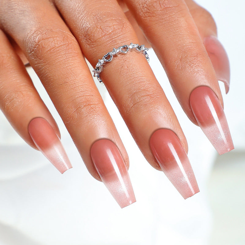 Elegant Ombre Coffin Long Pink Press On Nails with Glitter Gradient Detail