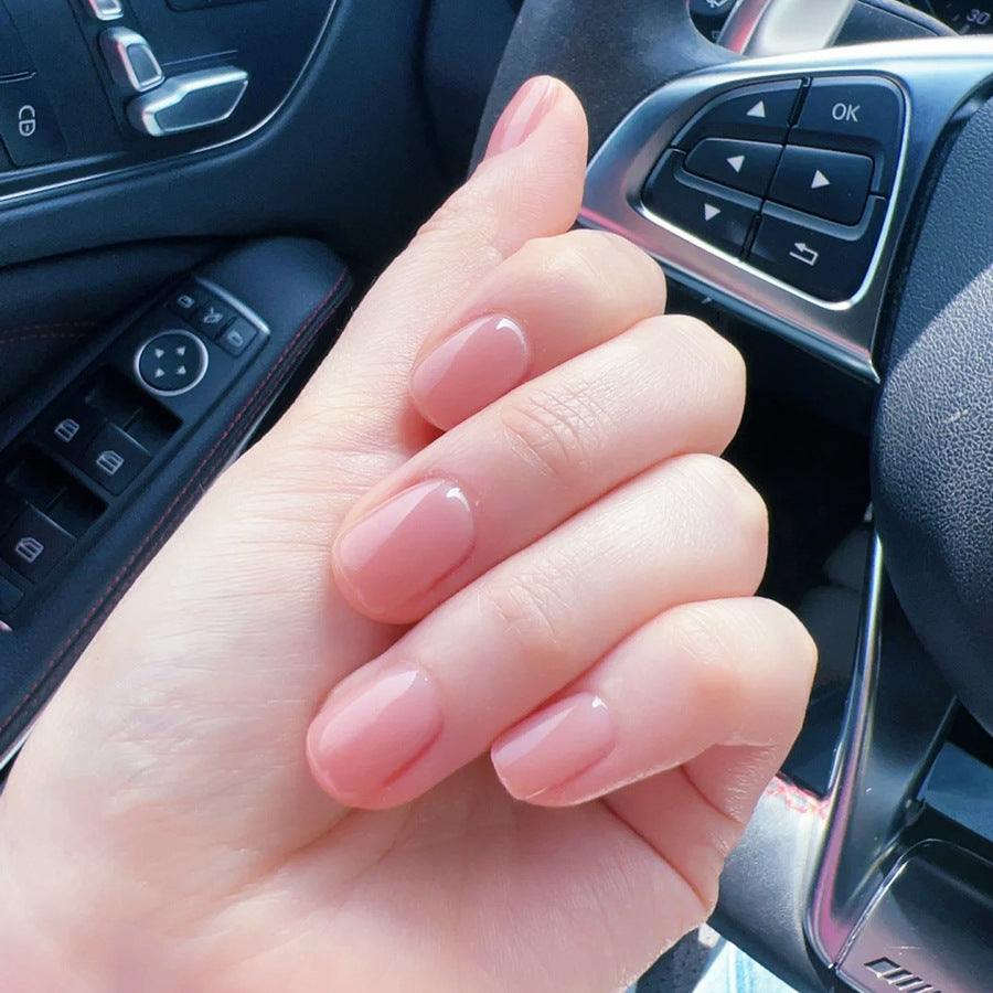 Elegant Rose Dream Short Oval Natural Pink Press On Nail Set with Sleek High Gloss Finish