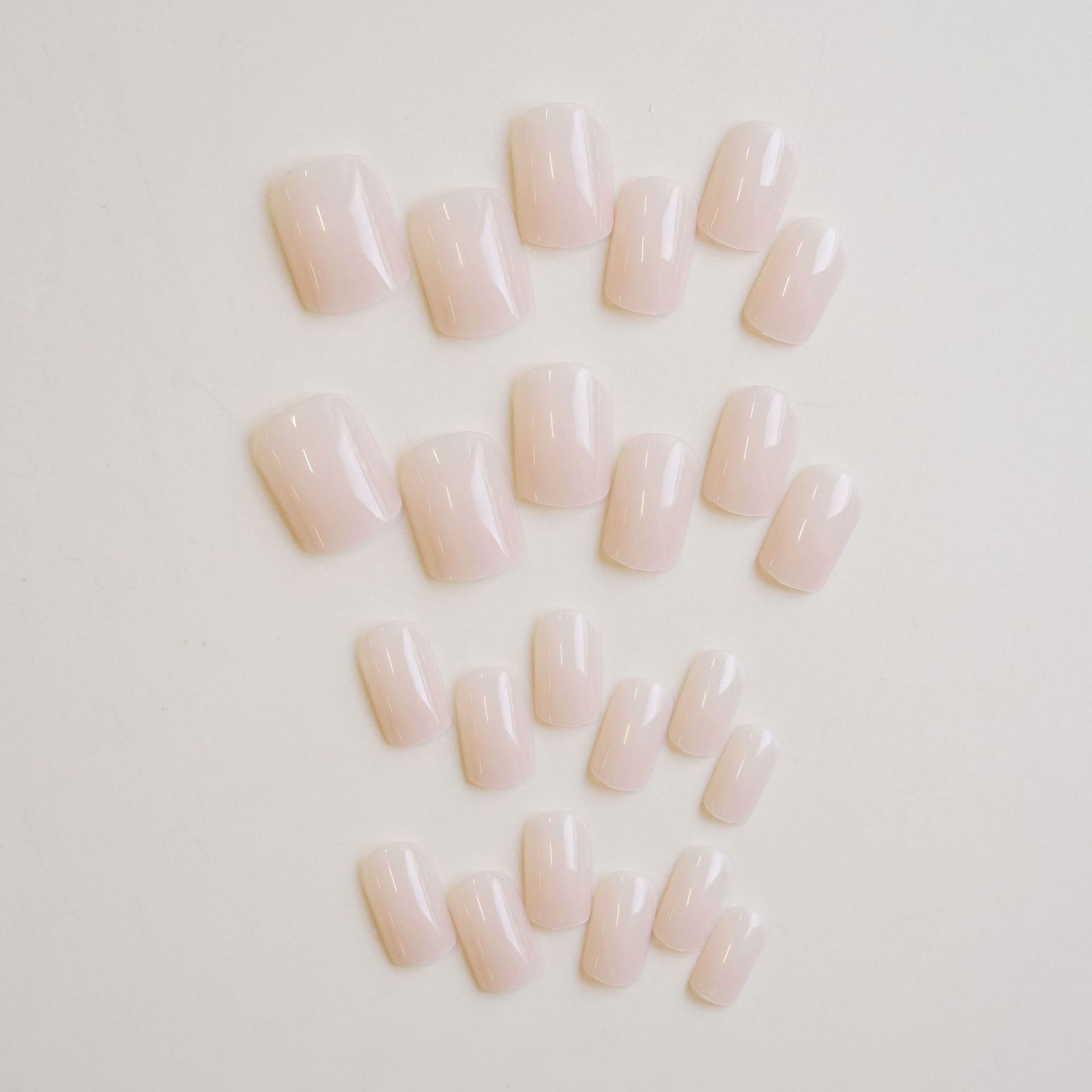 Elegant Serenity Medium Square Blush Pink Glossy Press On Nail Set with Versatile Styles
