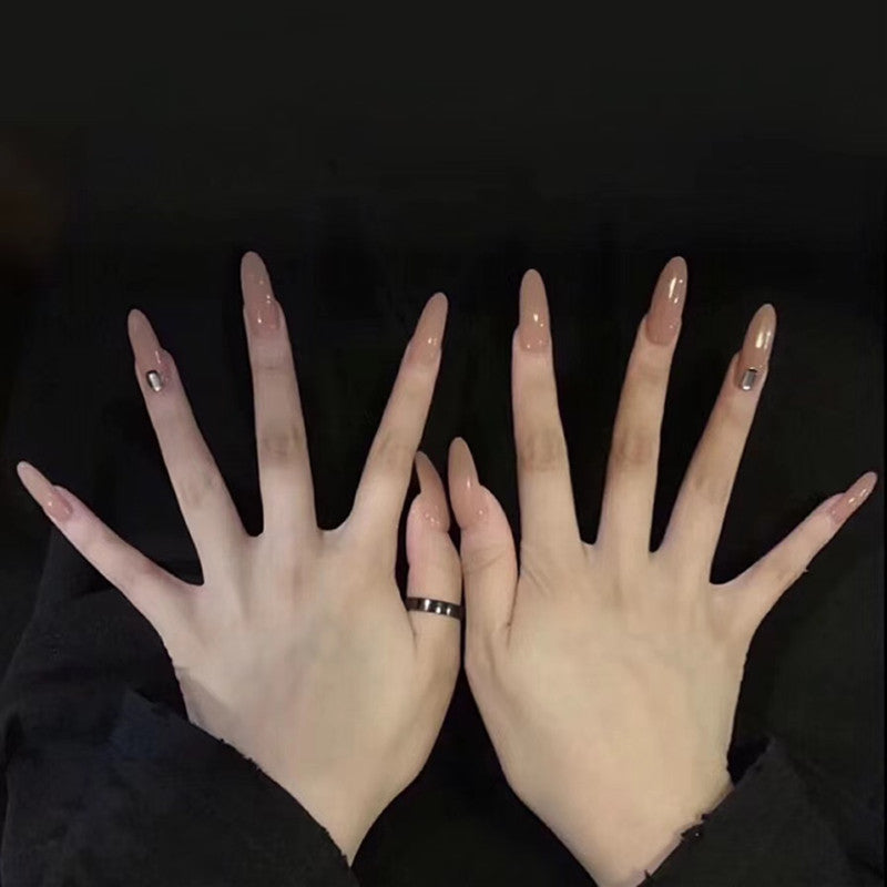 Elegant Soiree Long Almond Beige Press On Nail Set with Glitter Accents