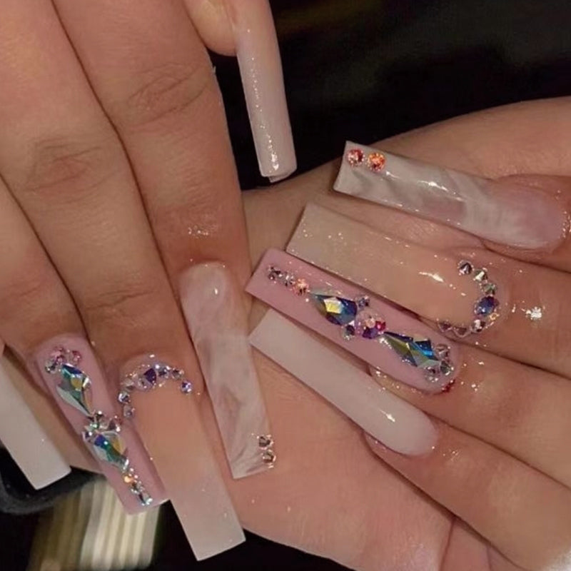 Swipe My Card Long Almond Pink Studded Press On Nails