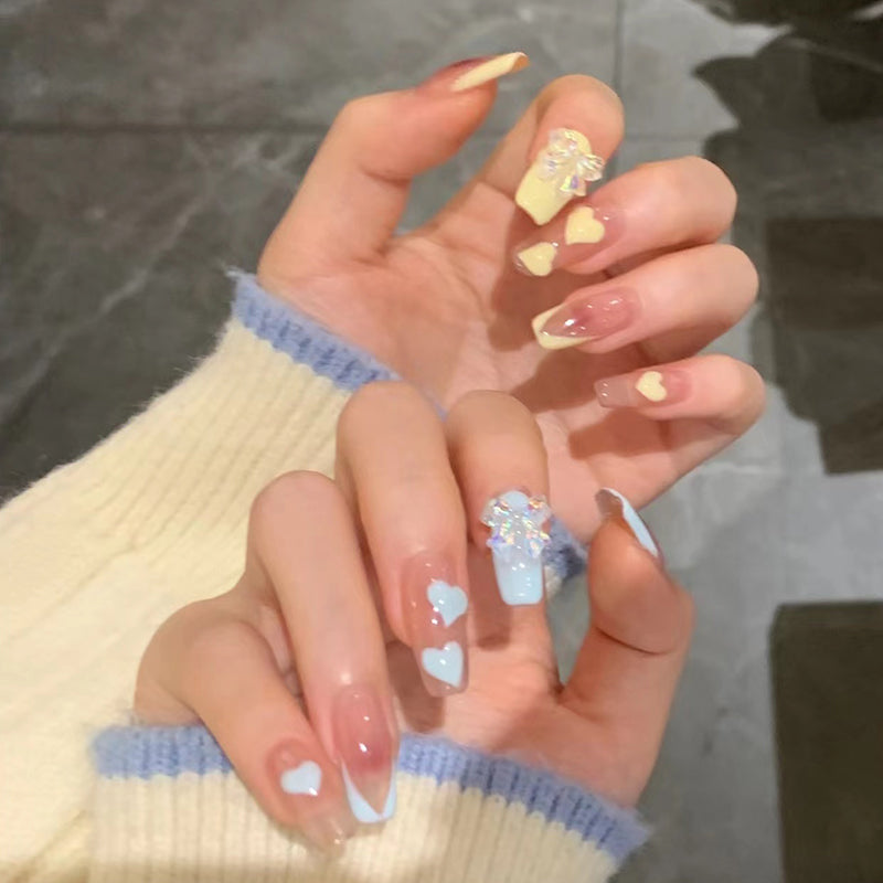 Enchanted Elegance Extra-Long Coffin Pastel Ombre Press On Nail Set with 3D Embellishments