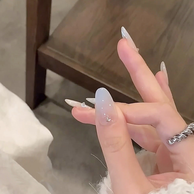 Enchanted Elegance Medium Almond Gradient Blue Press On Nail Set with Dazzling Glitter Accents