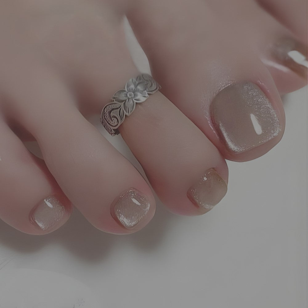 Enchanted Elegance Short Oval Taupe Press On Nails with Glitter Accent