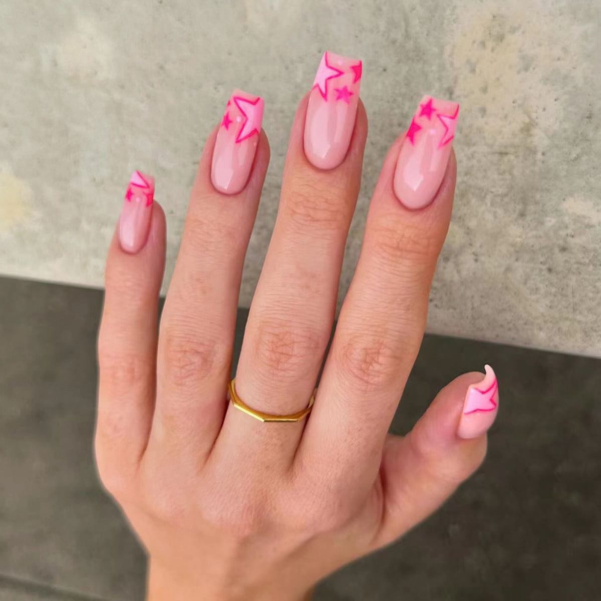 The Famous Ombre Medium Square Pink Everyday Press On Nails