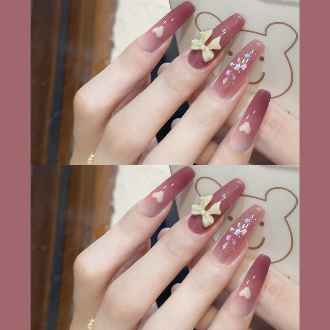 Enchanted Garden Long Coffin Mauve Press On Nail Set with 3D Floral Accents and Glitter Detail