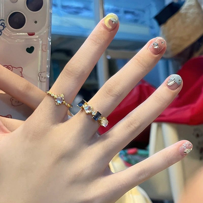 Enchanted Sparkle Collection: Short Length Squoval Press On Nails in Pastel Colors with Glitter Accents