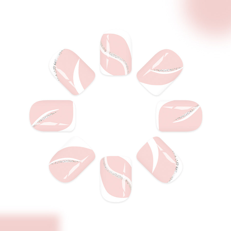 Enchanting Elegance Short Square Blush Pink Nails with Dazzling Glitter Accents
