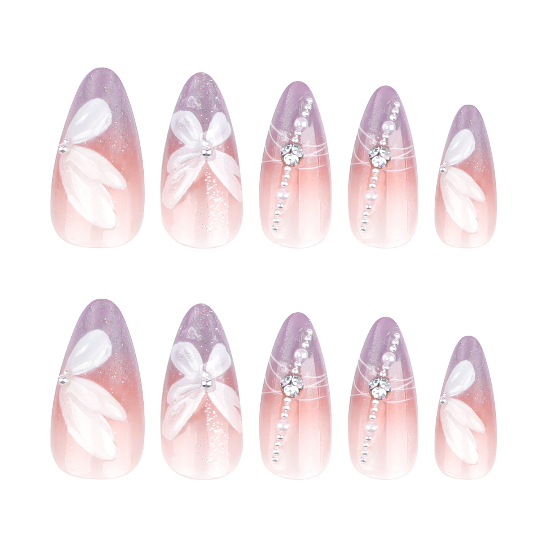 Enchanting Garden Dreamcatcher Stunning Ombre Gradient Short Almond Shaped Lavender and Pink with Floral Accents and Sparkling Embellishments Press On Nail Set