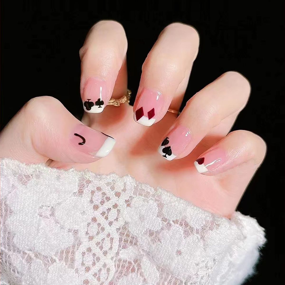 Enchanting Romance Medium Length Square Shape Pink Press On Nail Set with Love-Inspired Accents