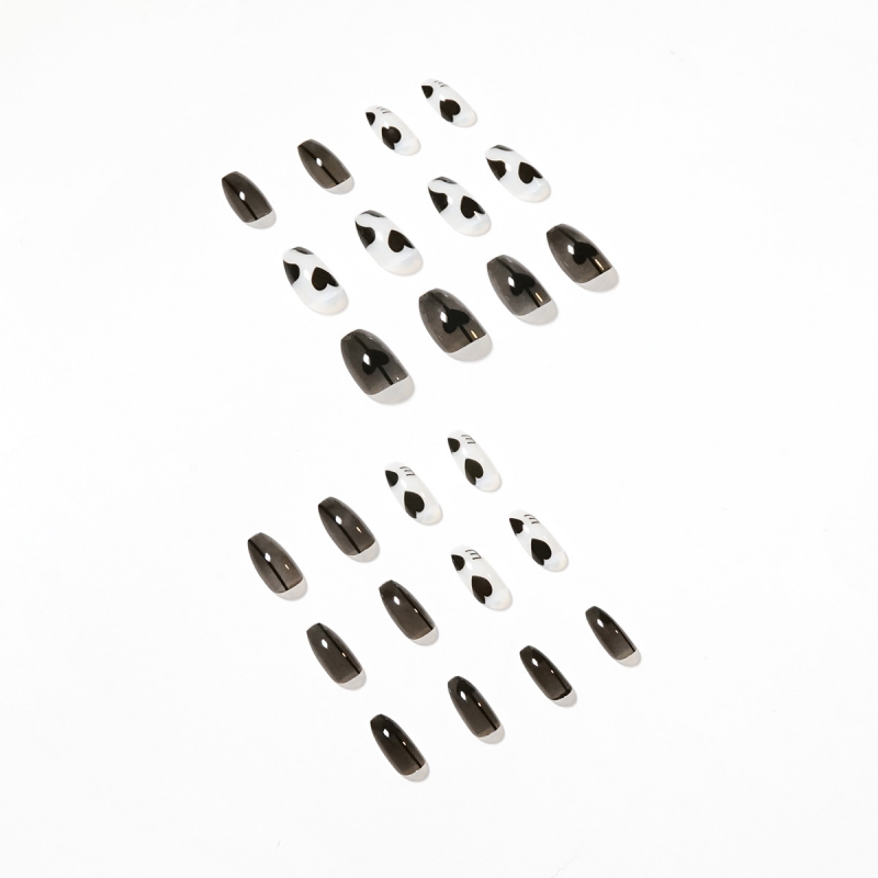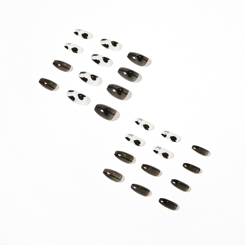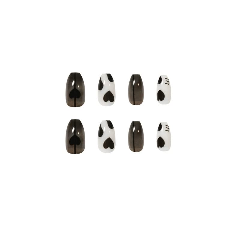 White Swirl Lines Medium Coffin White Everyday Press On Nails