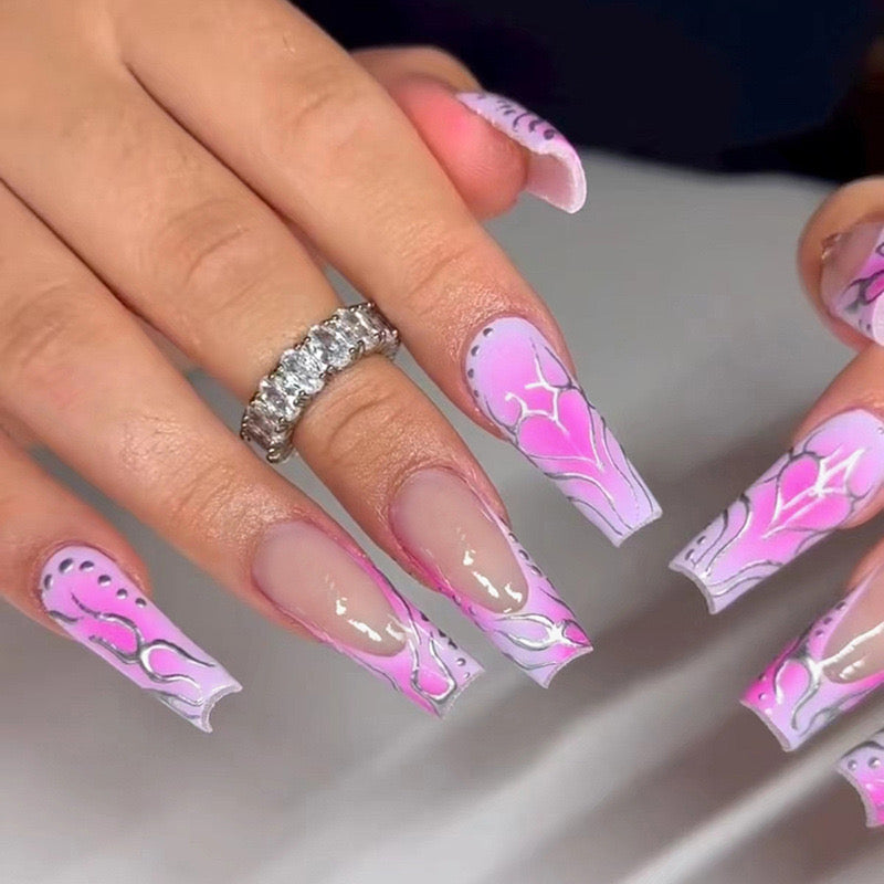 Feeling Like It Long Coffin Pink Bold Press On Nails