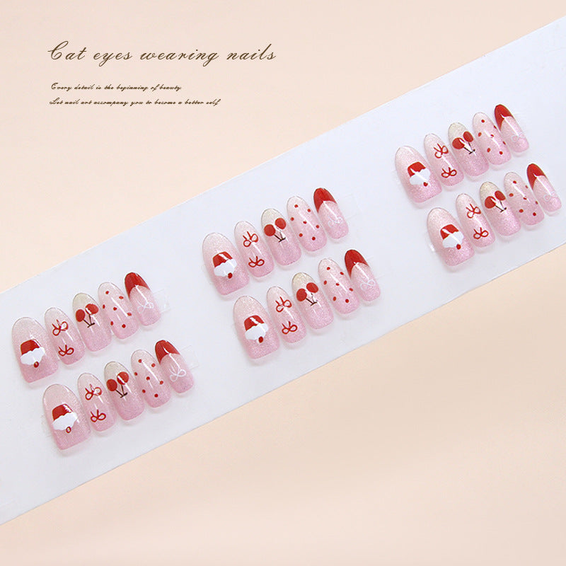 Festive Charm Long Oval Pink Press On Nail Set with Cute Christmas Designs