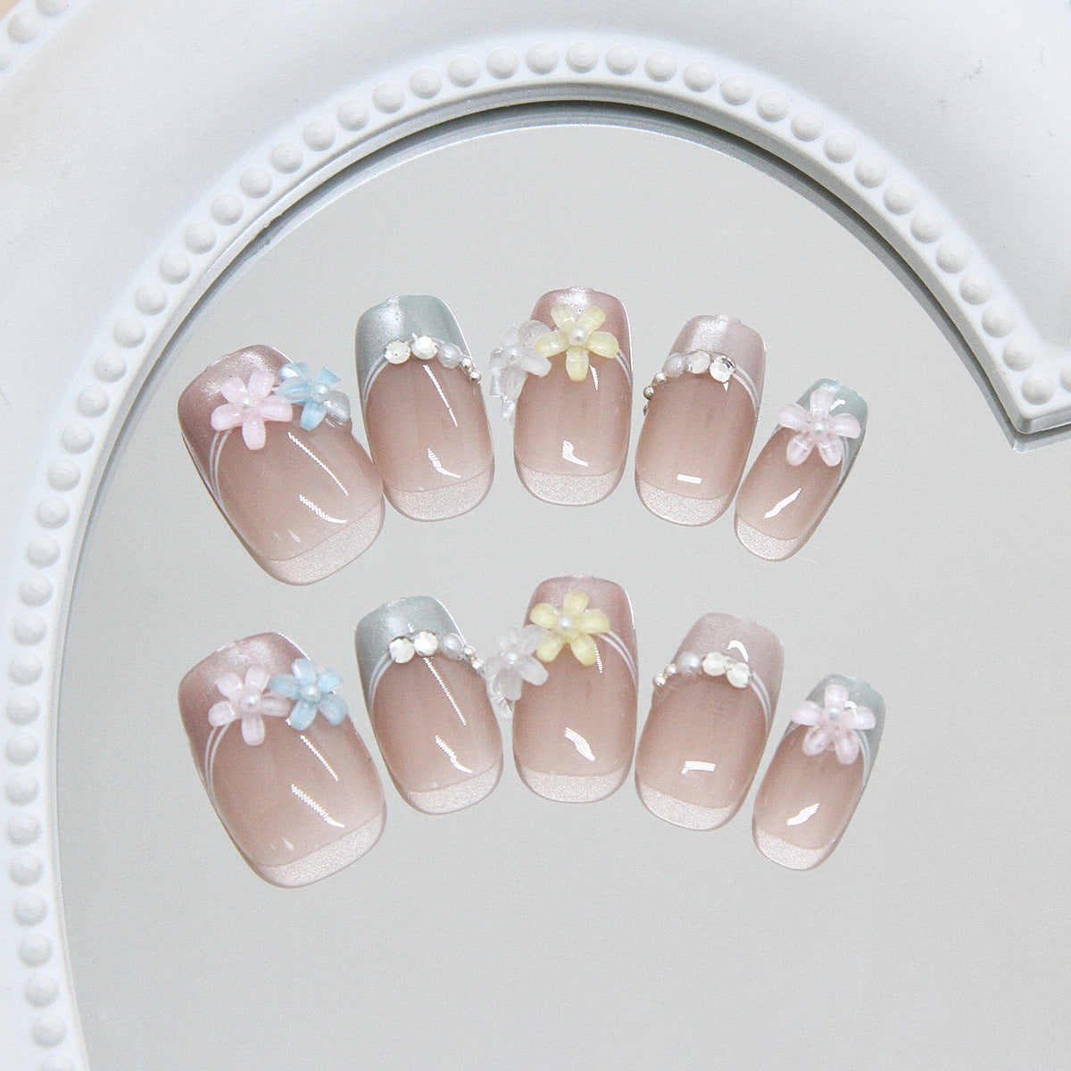 Floral Elegance Medium Square Soft Pink with Delicate Flower Accents