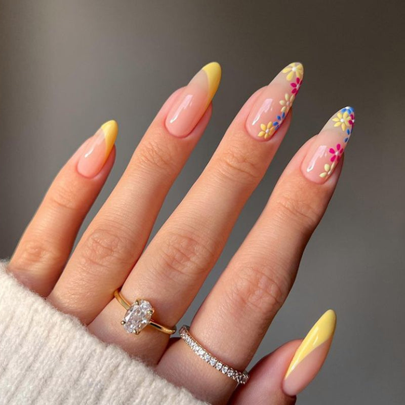 Flower Cruise Long Oval Yellow Spring Press On Nails