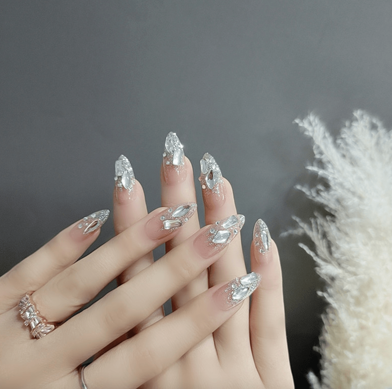 Swipe My Card Long Almond Pink Studded Press On Nails
