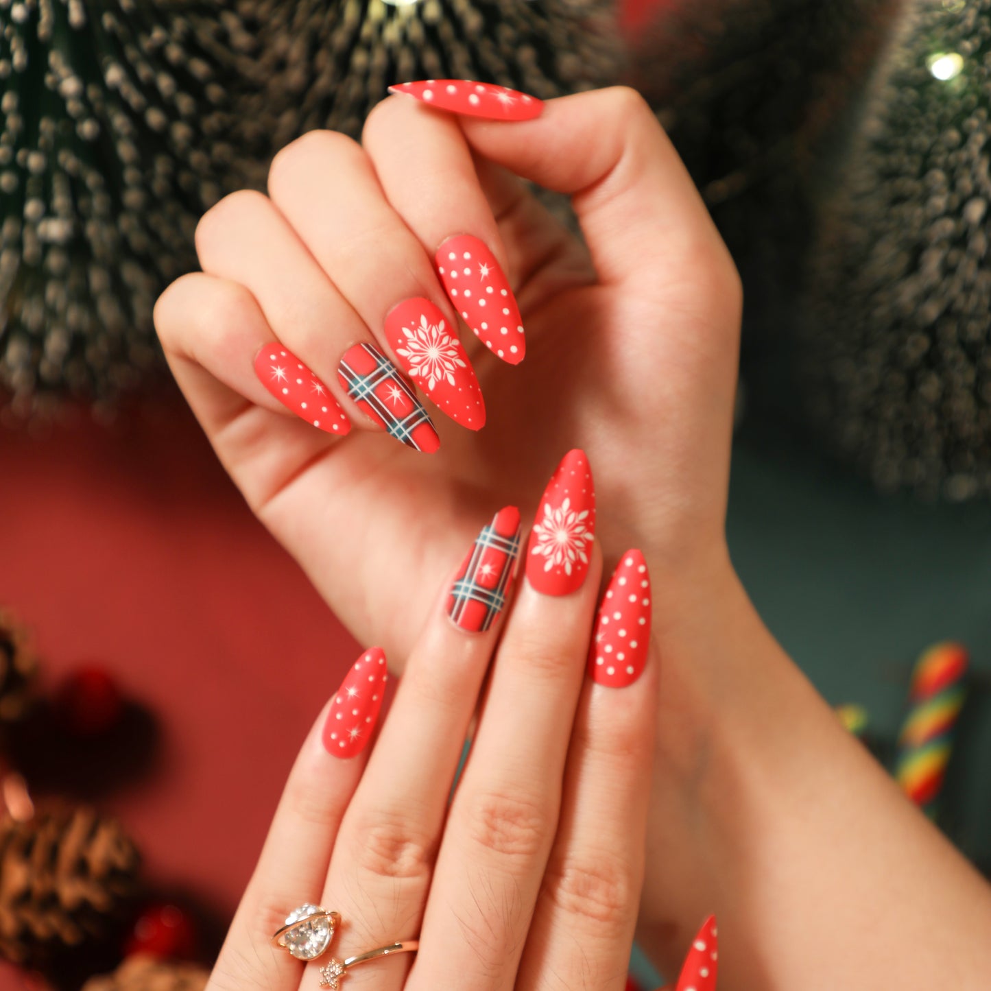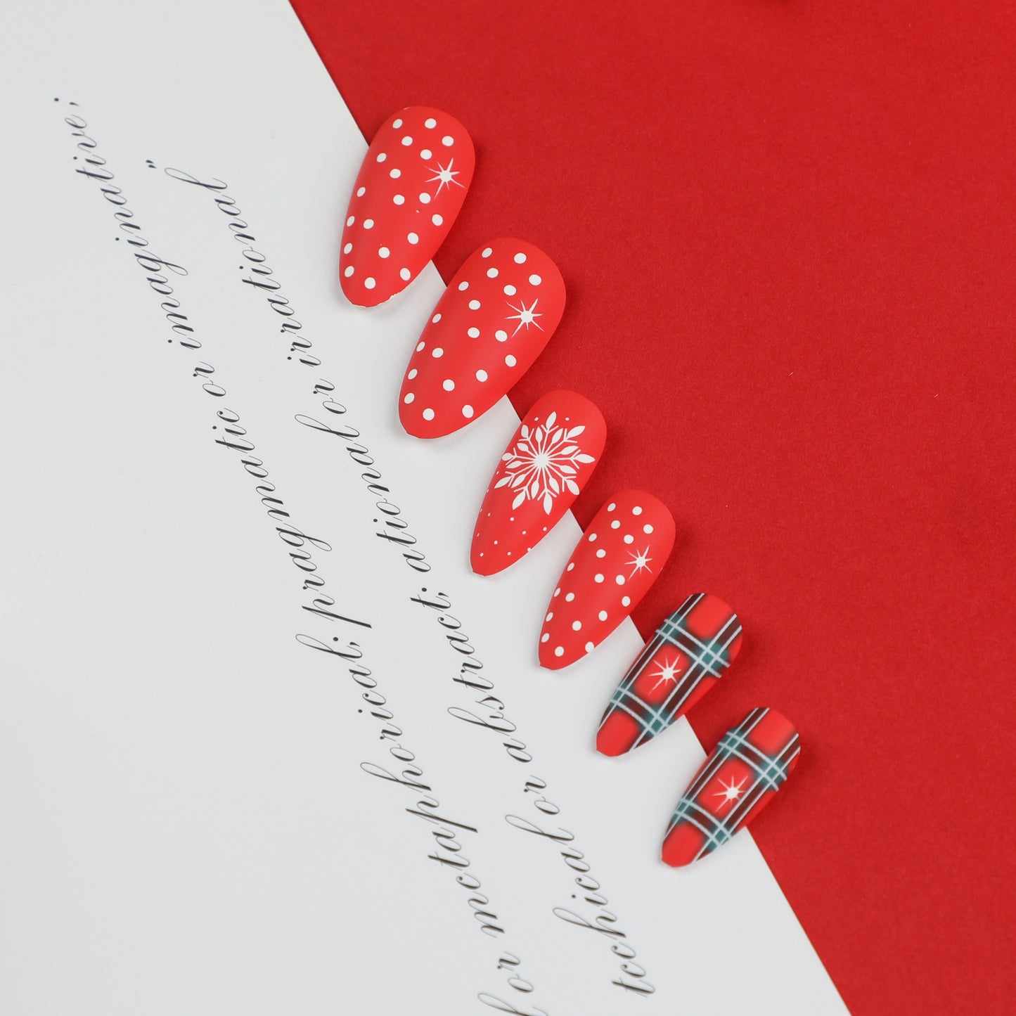 Gift Exchange Long Almond Red Holiday Press On Nails