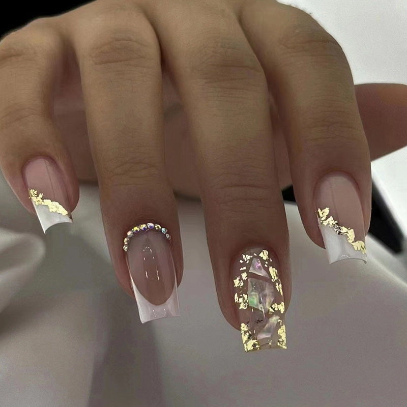 Glam Queen Medium Square Gold Glitter Press On Nails