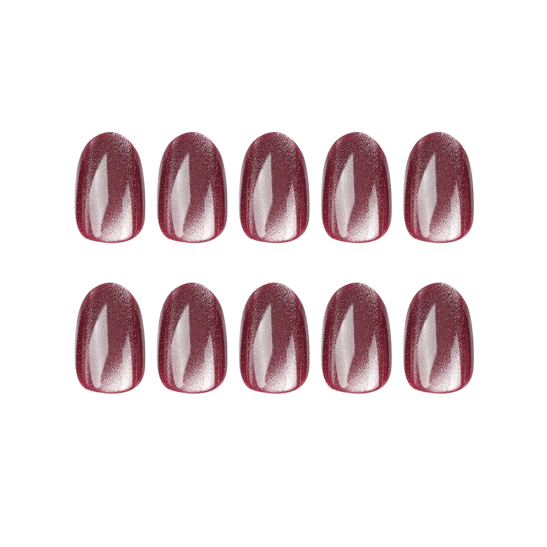 Glamorous Autumn Vibes Short Round Burgundy Press On Nail Set with Stunning Glitter Finish