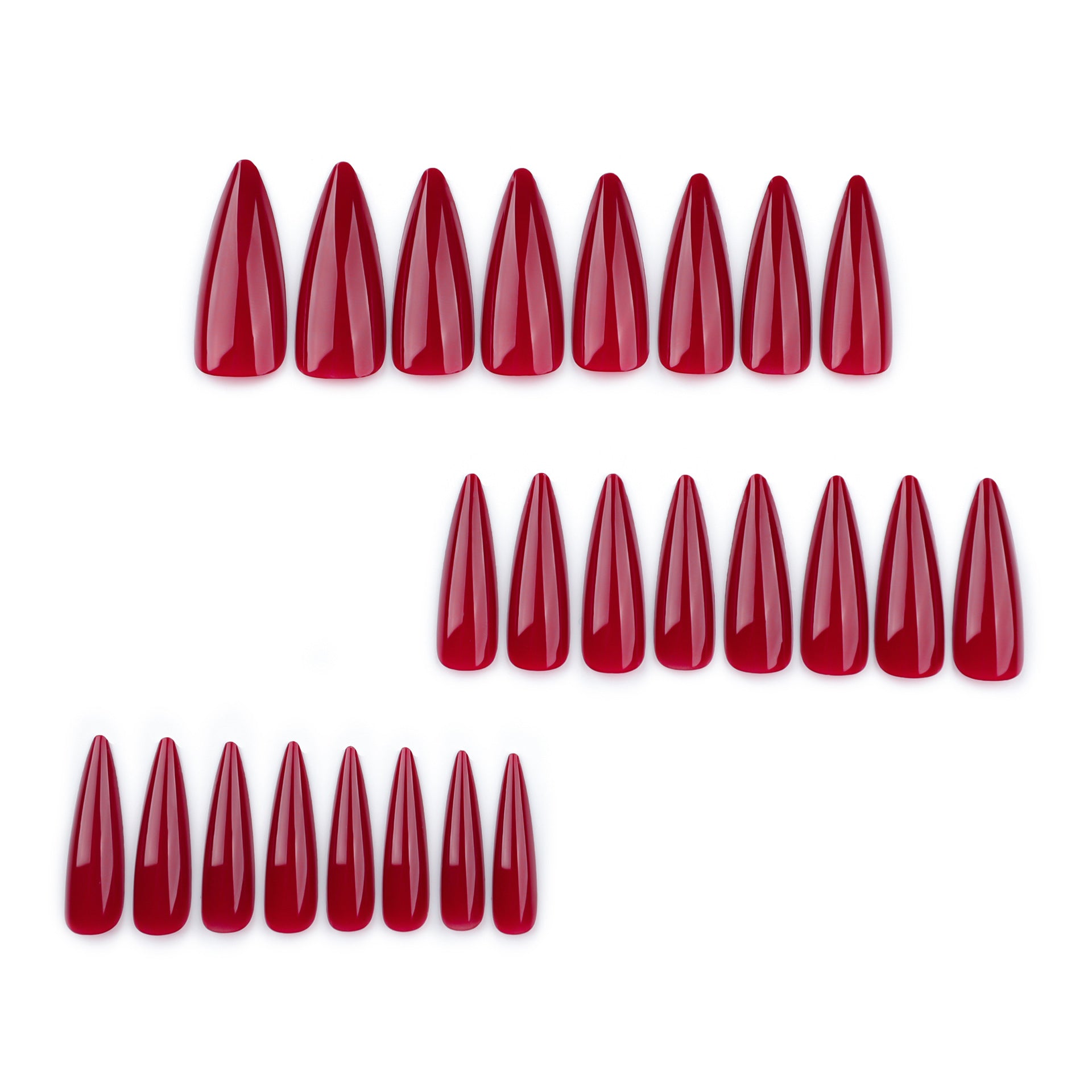Glamorous Elegance Long Almond Shaped Glossy Red Press On Nail Set with Unique Fitting Design