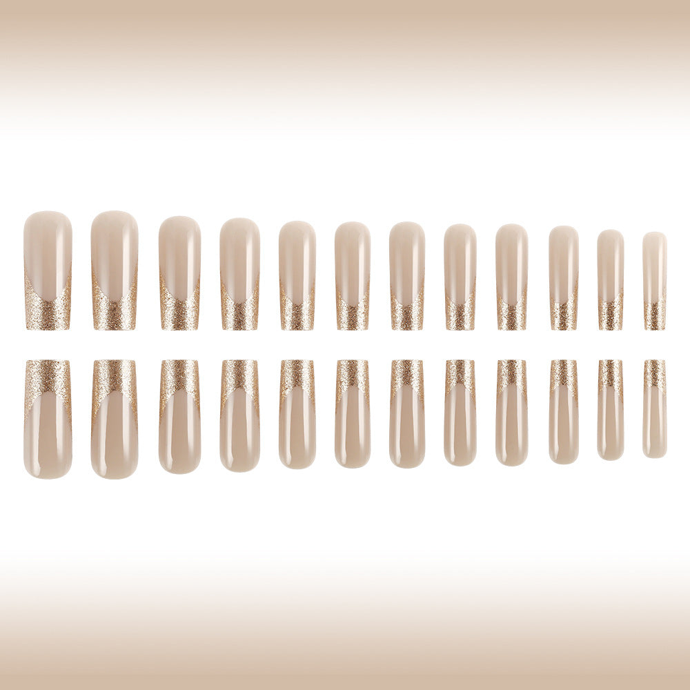 Glamorous Elegance Long Square Beige Press On Nail Set with Sparkling Gold Accent