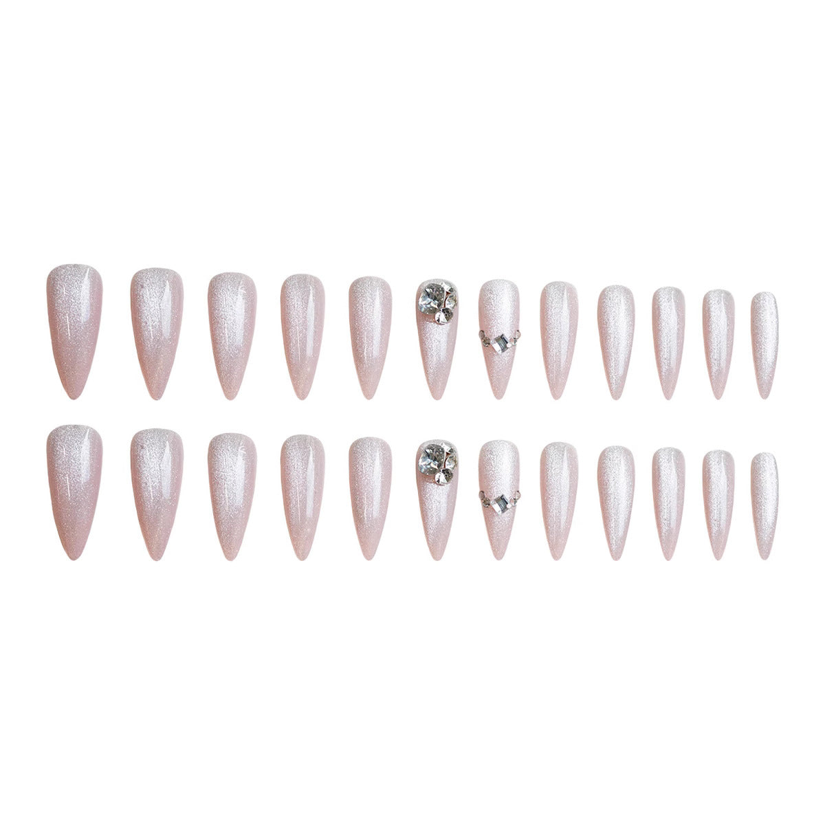 Glamorous Elegance Long Stiletto Shimmering Pink Press On Nail Set with Stunning Gem Accents