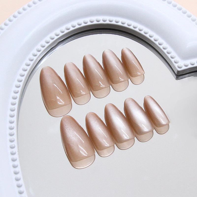 Glamorous Elegance Medium Almond Shape Soft Beige Color with Iridescent Shine Press-On Nail Set