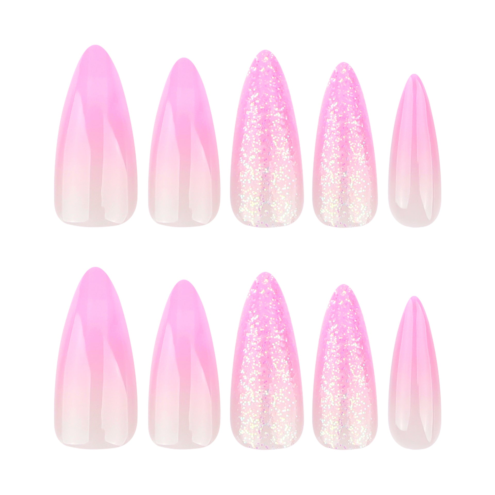 Glamorous Garden Pink Medium Almond Shaped Press On Nail Set with Stunning Glitter Gradient Finish