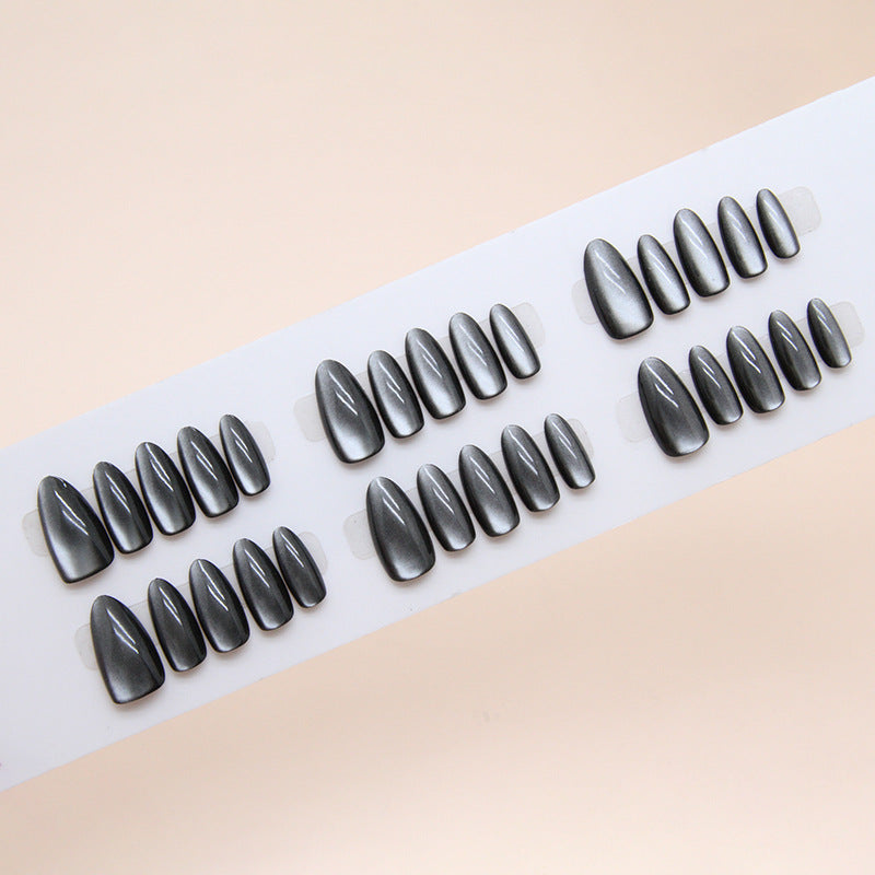 Glamorous Night Sky Long Almond Shaped Shimmering Gray Press On Nail Set with Mirror Finish
