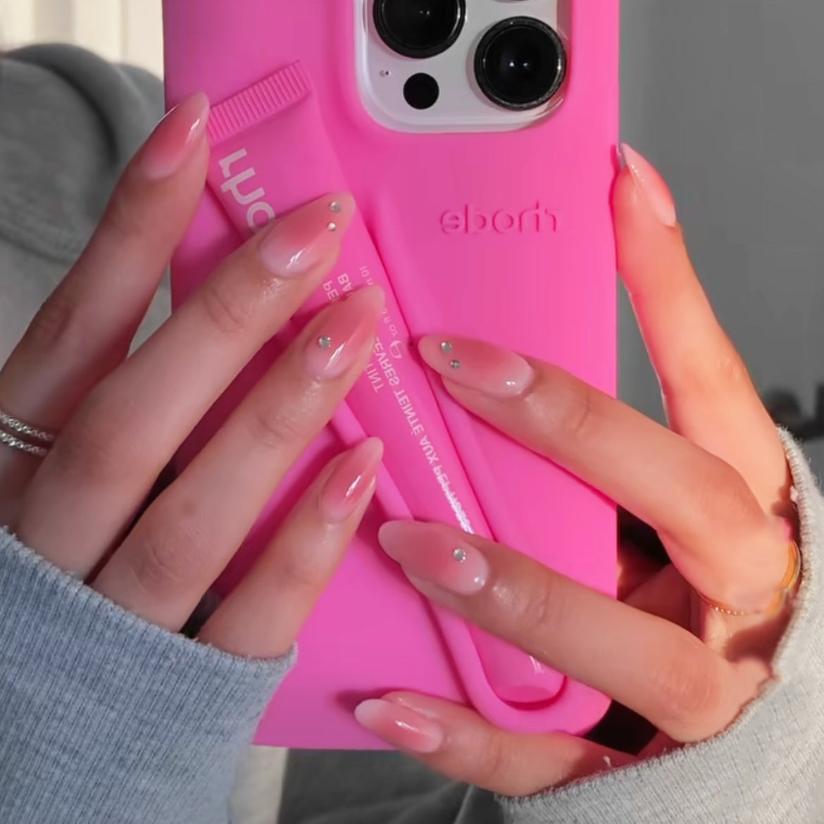 Swipe My Card Long Almond Pink Studded Press On Nails