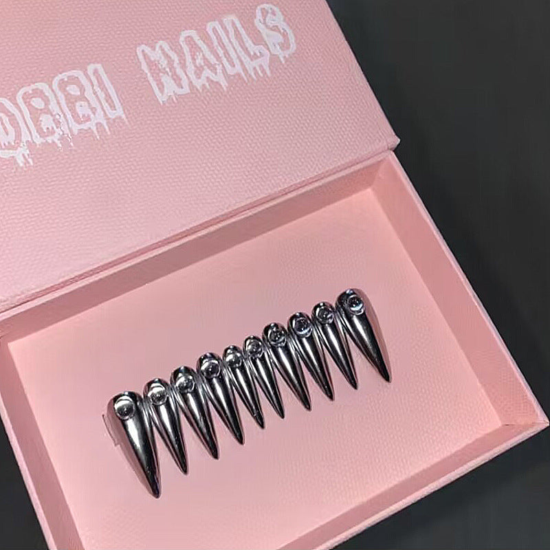 Glamourous Gothic Extra Long Stiletto Black Press On Nails with Crystal Accents