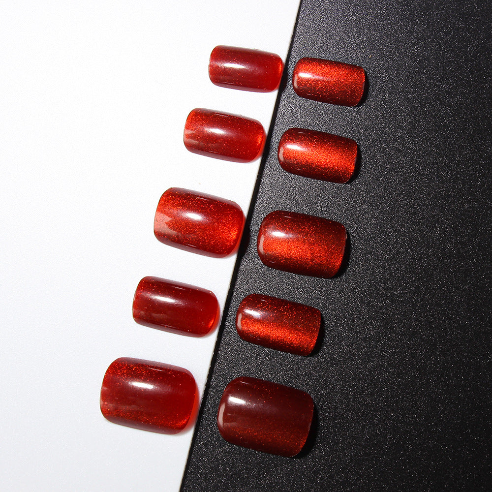 Glistening Autumn Ember Press On Nail Set Medium Square Red Sparkle Finish