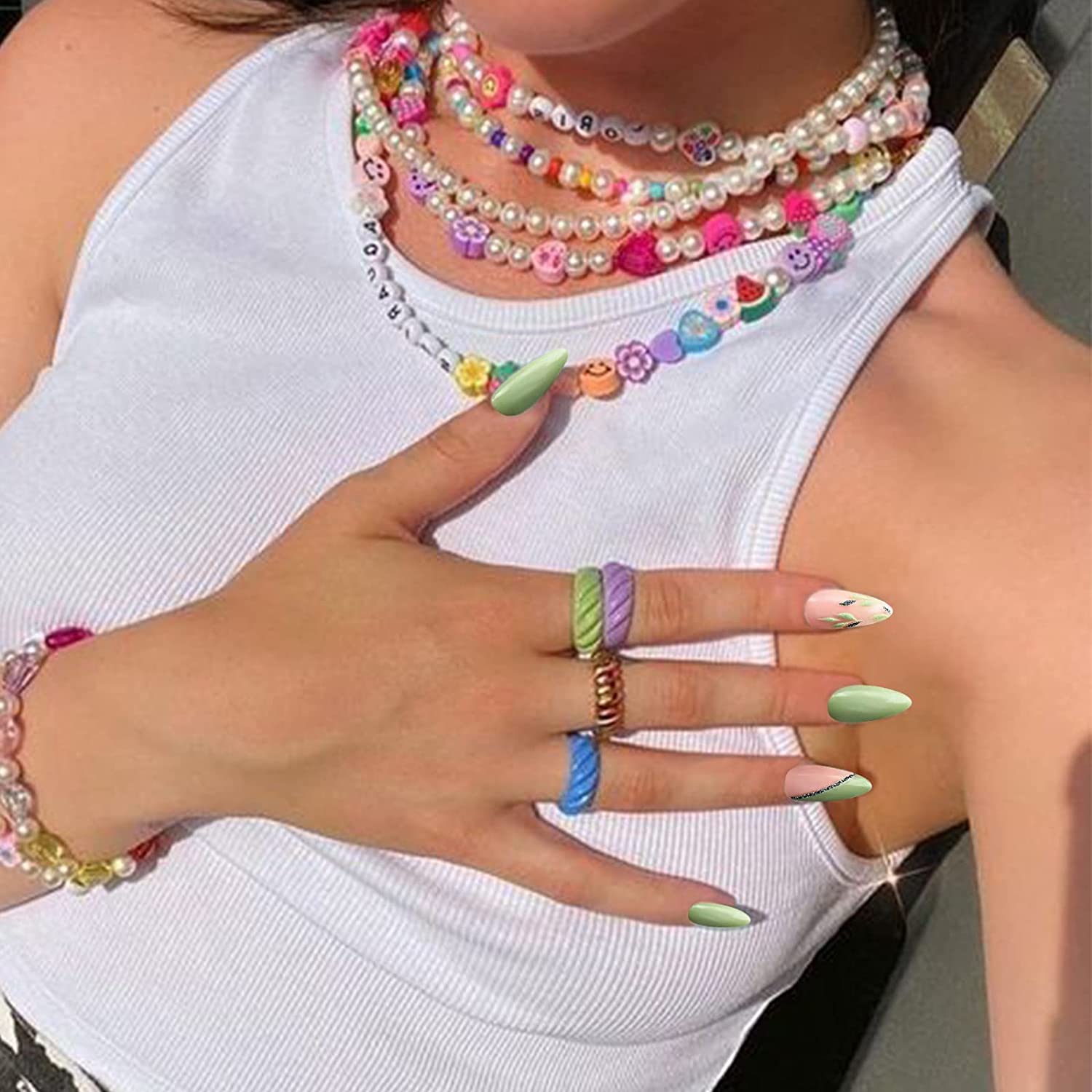 Healthy Routine Long Oval Green Fall St. Patrick's Day Press On Nails