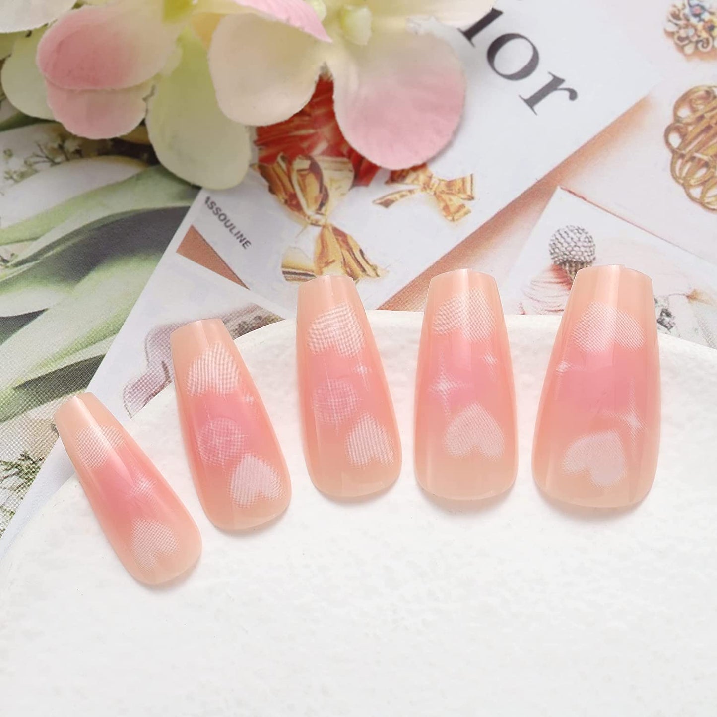Heart 2 Heart Long Coffin Pink Hearts Press On Nails