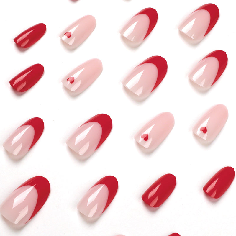Heart Burn Long Oval Pink French Tips Press On Nails