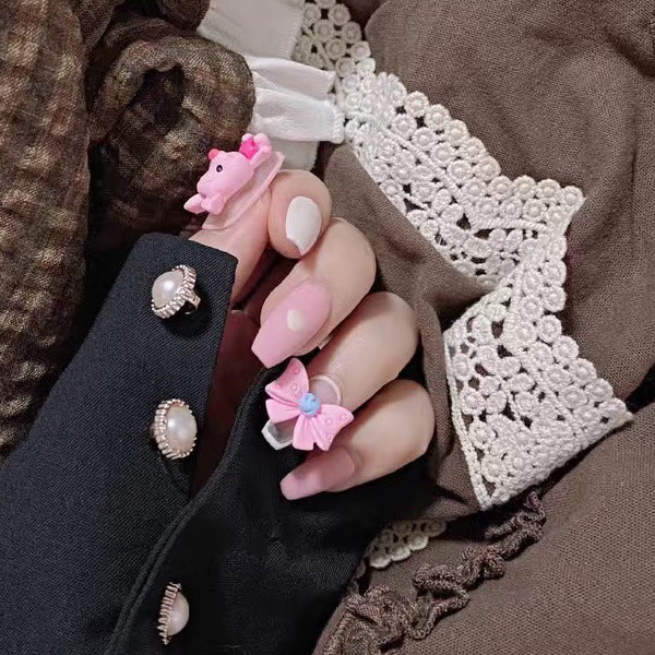 Kitschy Kim Short Coffin Pink Bow Press On Nails