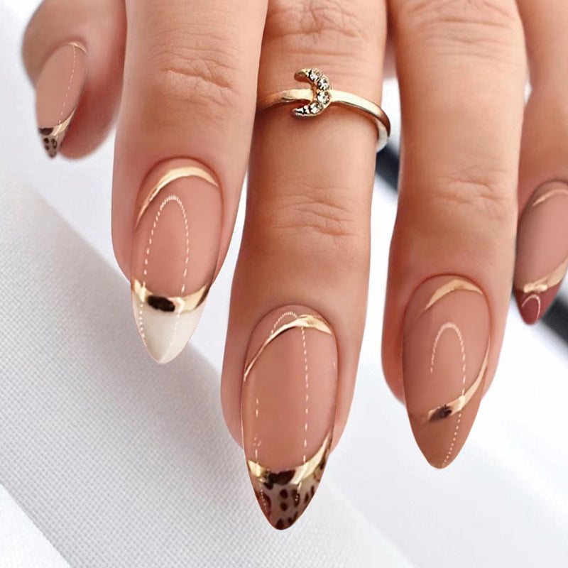 Rawr Medium Almond Gold Leopard French Tips Press On Nails