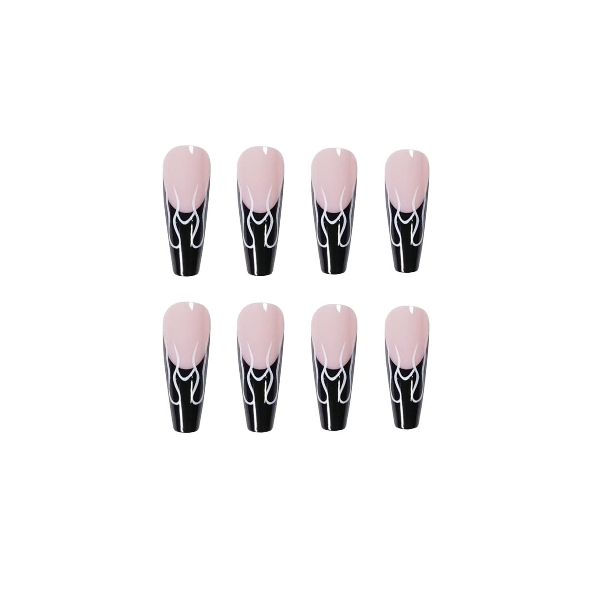White Swirl Lines Medium Coffin White Everyday Press On Nails