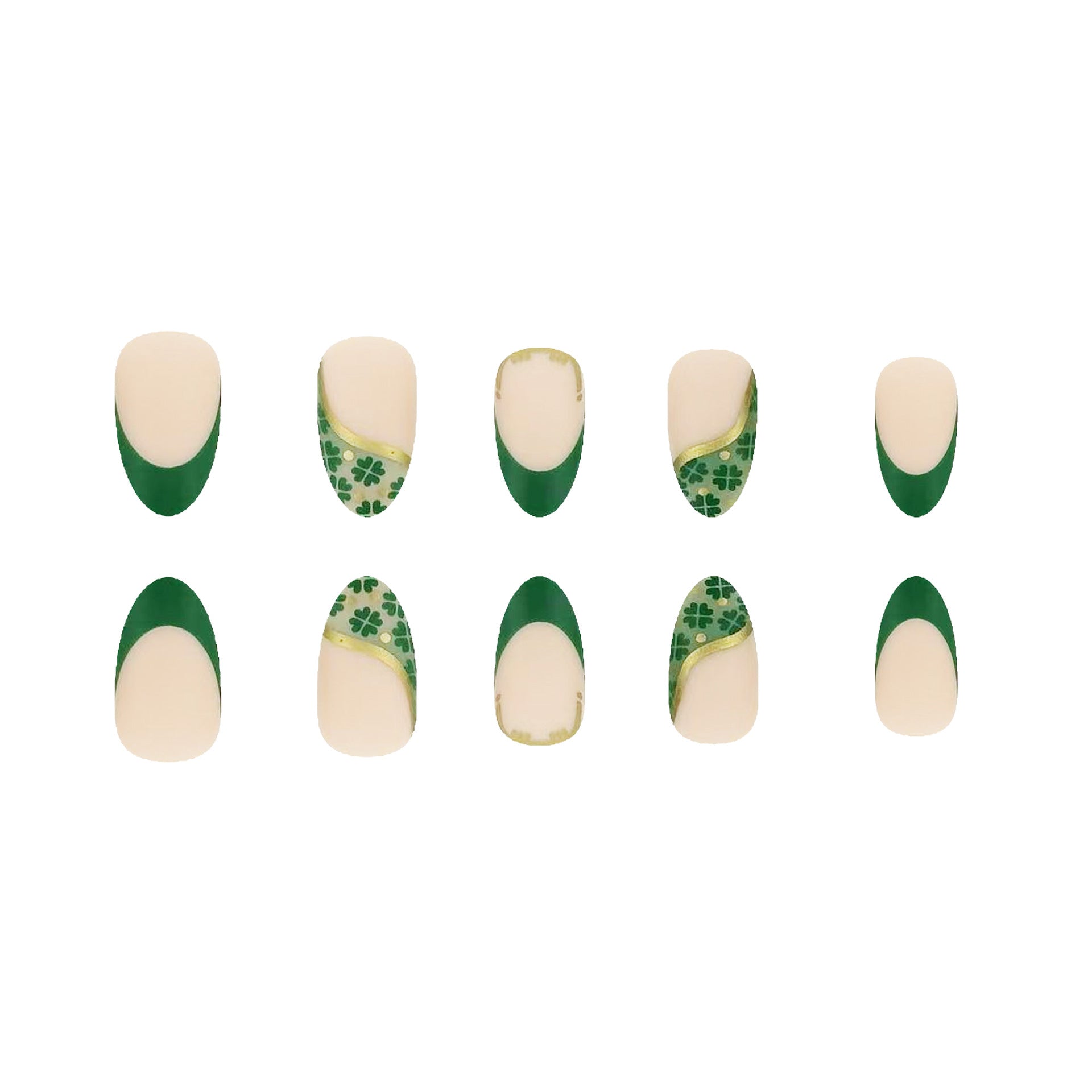 Lucky Charm Elegant Short Almond Green and Cream Press On Nails with Floral Artwork