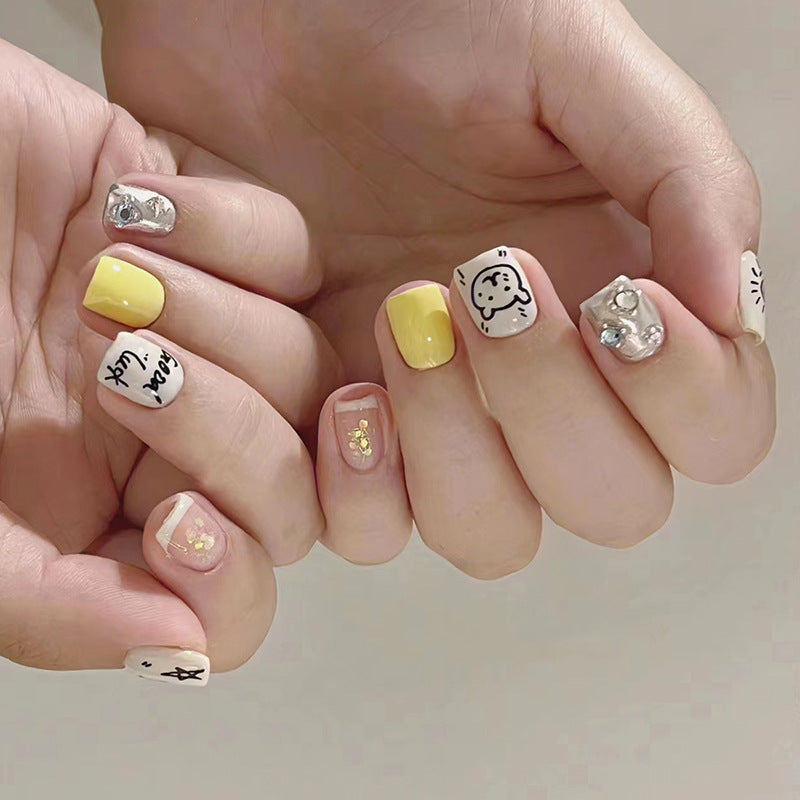 Lucky In Life Short Square Yellow Studded Press On Nails