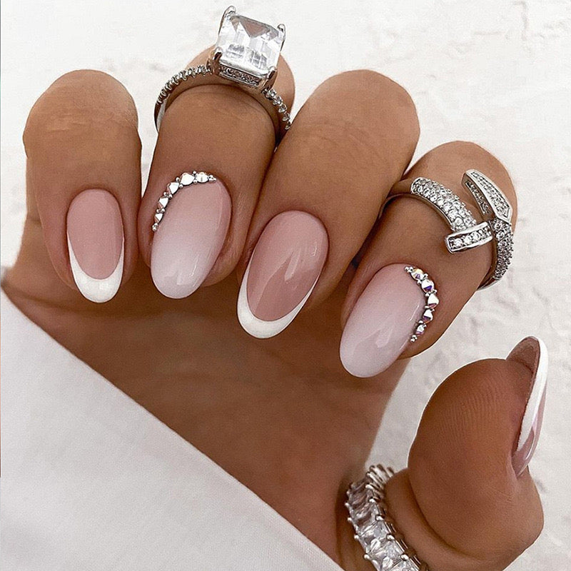 Swipe My Card Long Almond Pink Studded Press On Nails