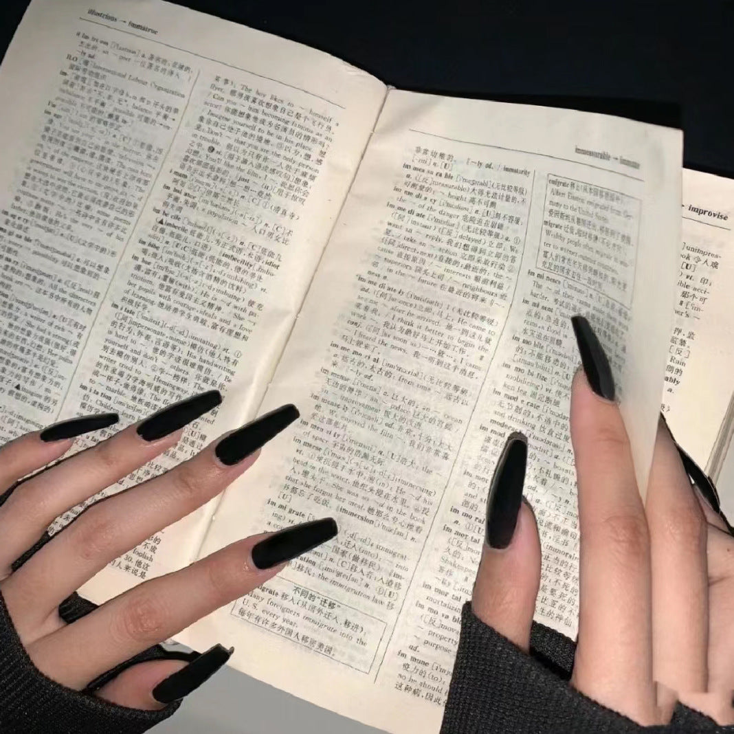 Mysterious Elegance Long Coffin Press On Nails Jet Black with Matte Finish for a Bold Look
