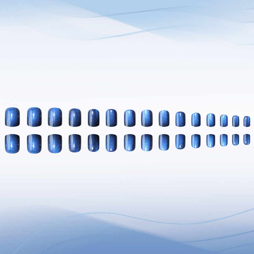 Oceanic Dream Medium Square Blue Glitter Press On Nail Set with Shimmering Finish
