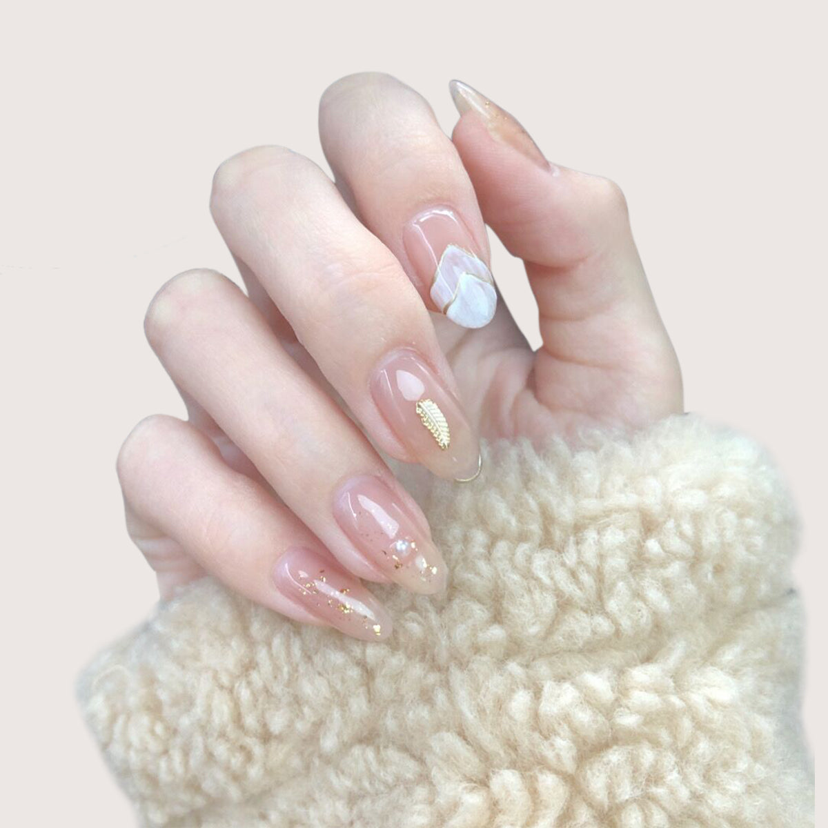 Okay For Now Long Oval Beige Glitter Press On Nails