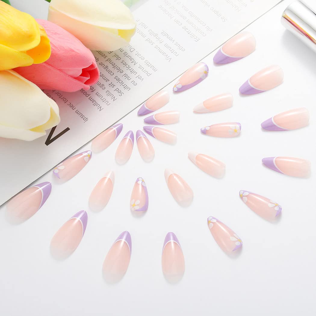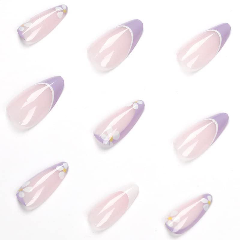 Blushing Bouquet Short Almond Pink Floral Press On Nails