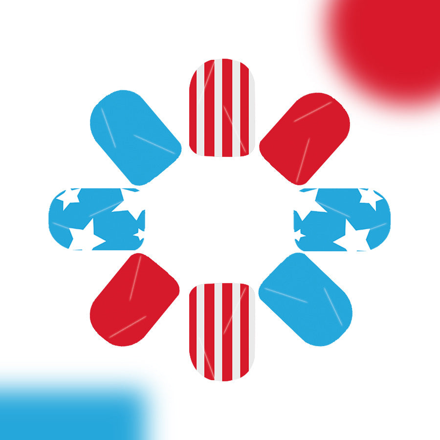 Patriotic Glamour Short Square Red and Blue Nail Set with Starry and Striped Designs