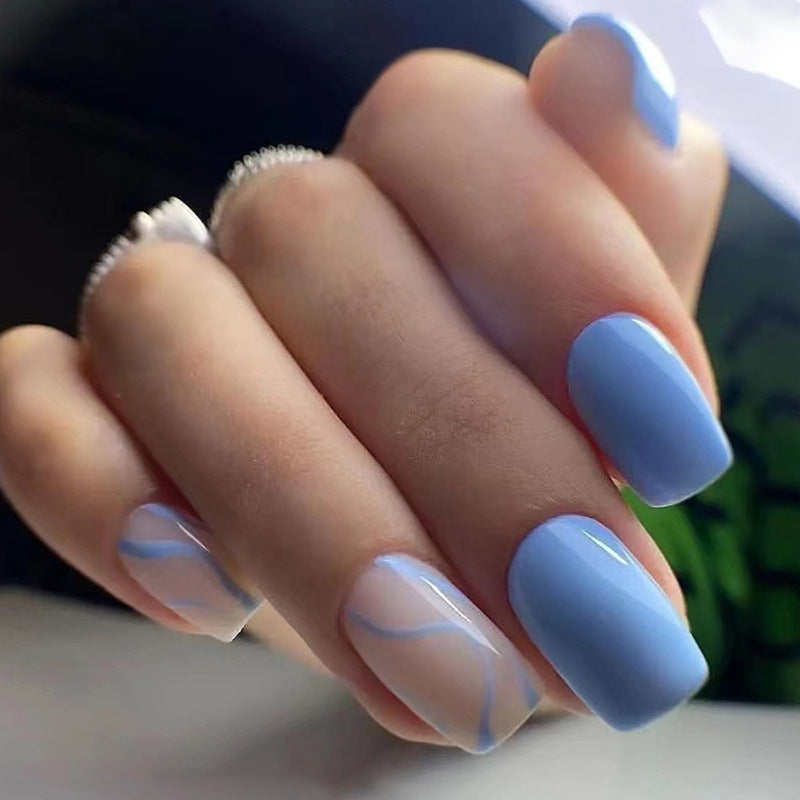 White Swirl Lines Medium Coffin White Everyday Press On Nails