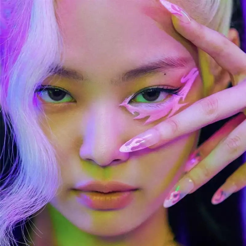 Pink Venom Medium Almond Pink Flames Press On Nails