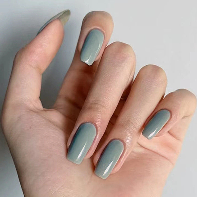 Smoky Woods Short Squoval Gray Abstract Press On Nails