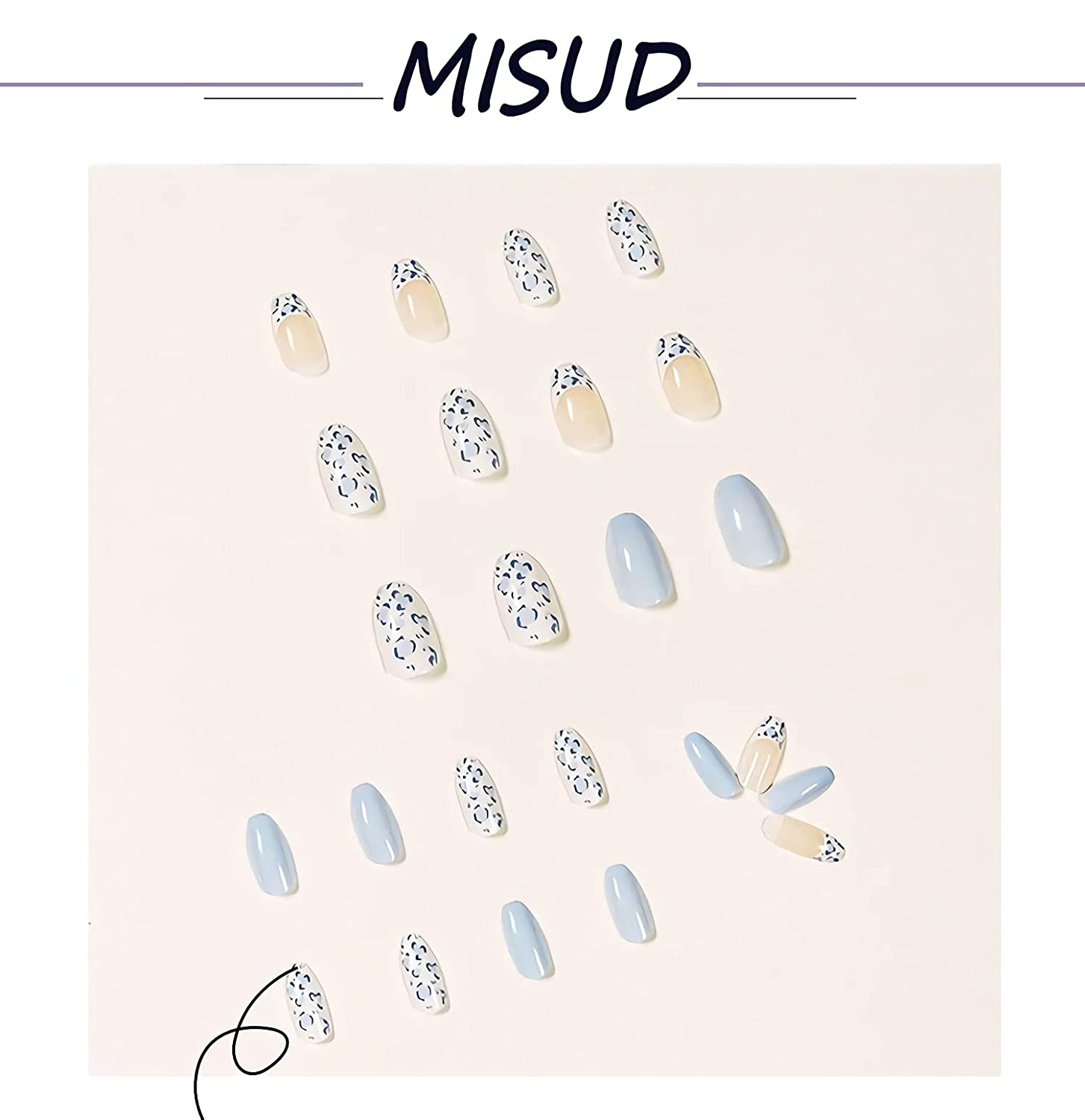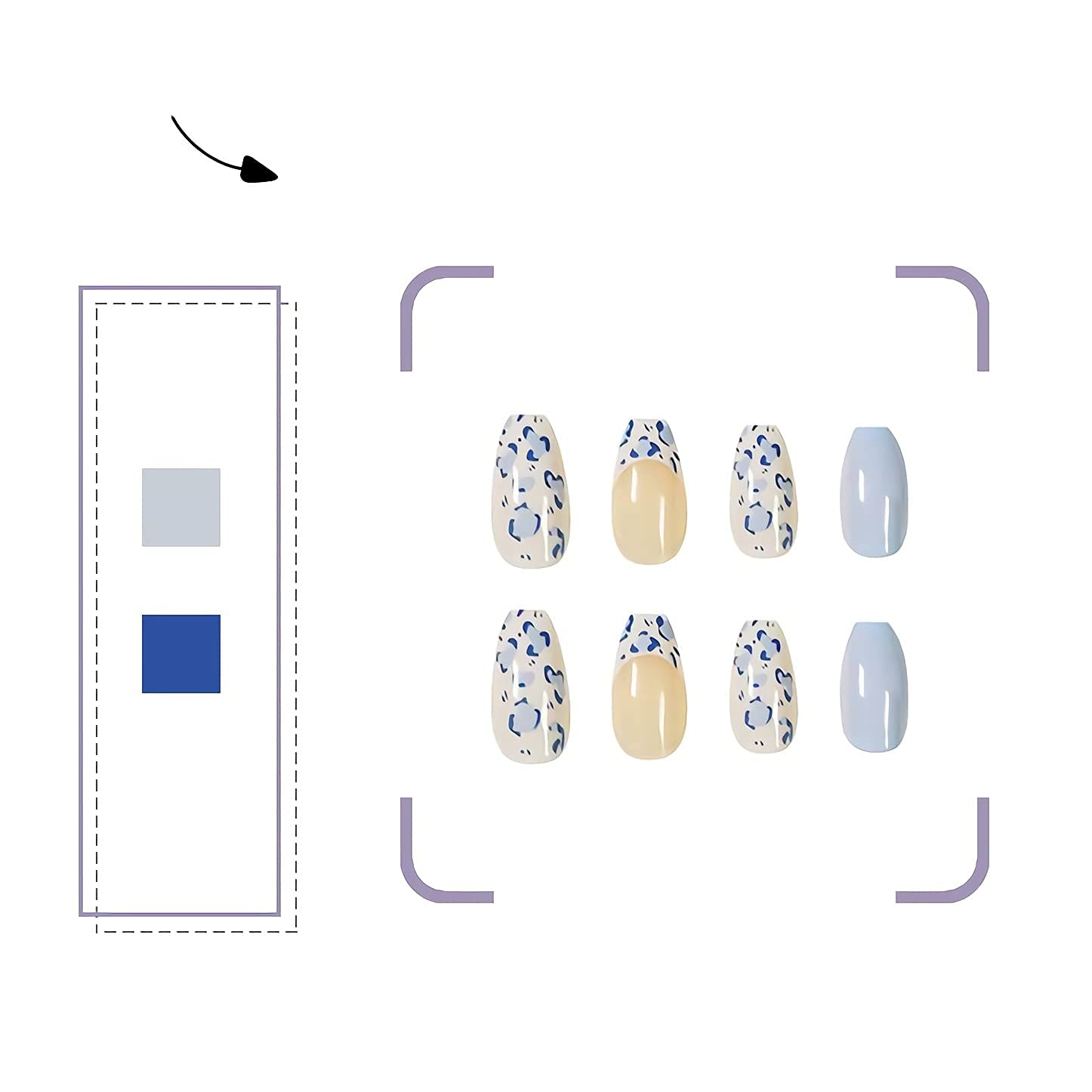 Porcelain Cow Long Square Blue Animal Pattern Press On Nails